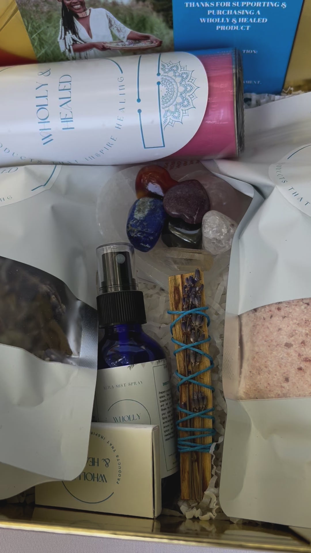 This Self-Care Package is intended to set the vibe for a self-care day. Creating a luxurious yet healing bath. Chakra crystals to align your energy field. A pink candle to set intentions before your bath and allow to illuminate the space during your bath and more. Perfect for gifting. Made with love to share and spread love.